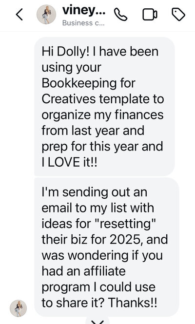 "My photography business is brand new, and Dolly's Financial Template has been an absolute lifesaver for learning to organize and plan my financial business goals!"